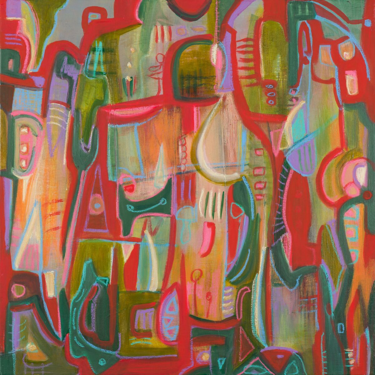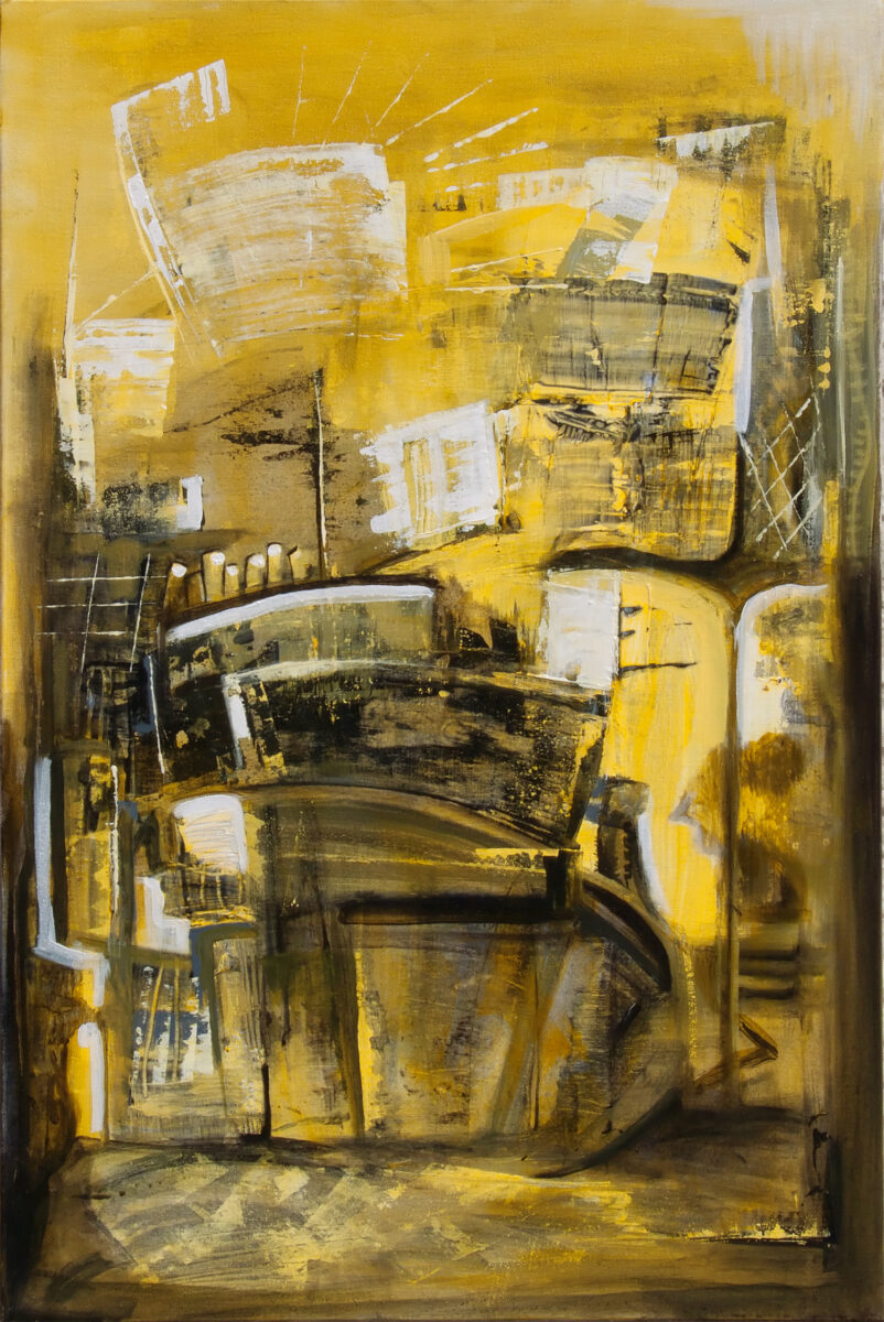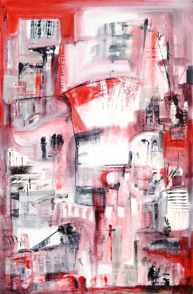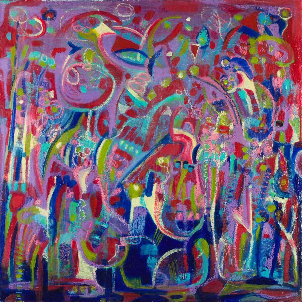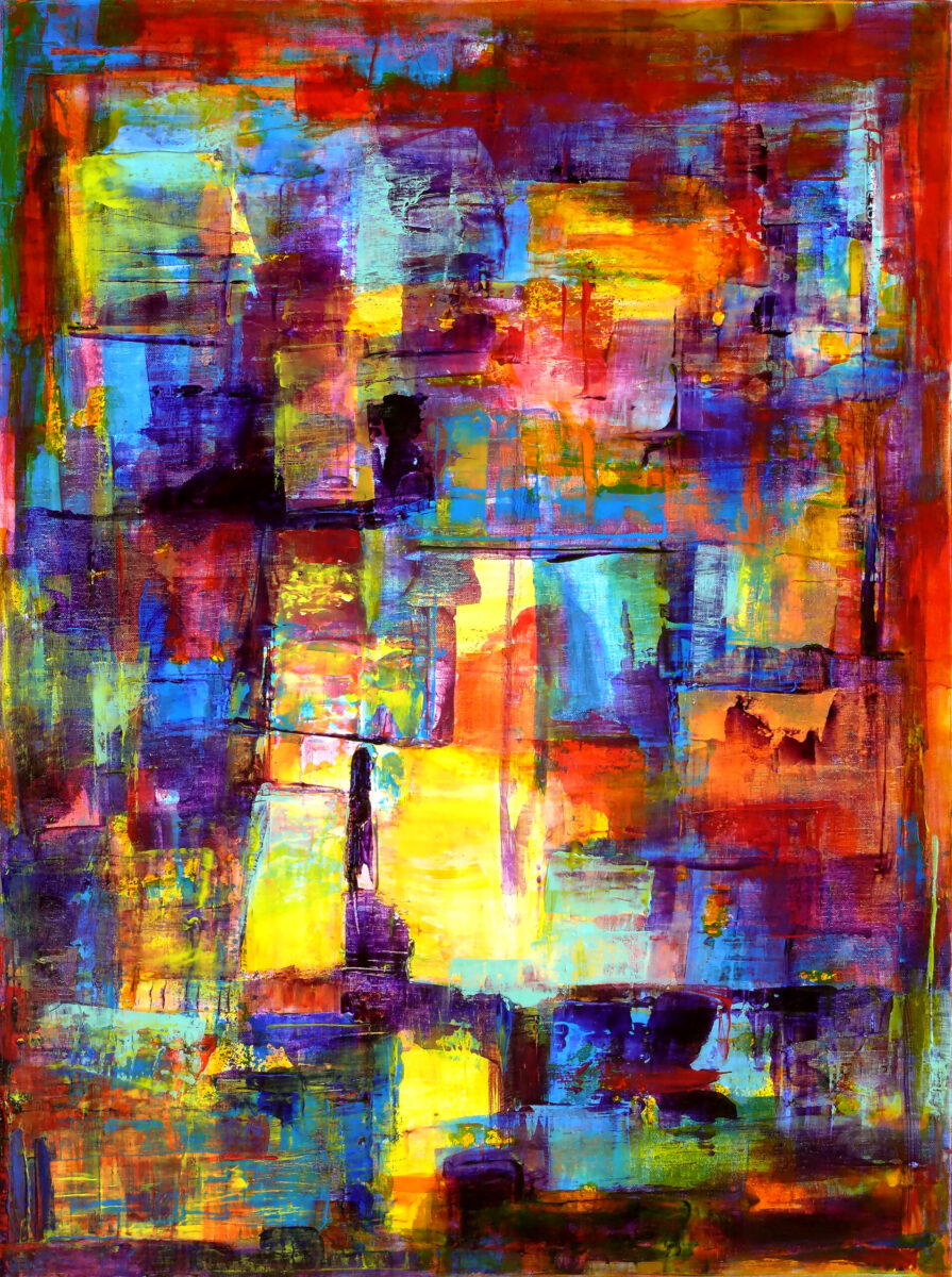 Ich malte dieses Werk mit vielen Schichten reiner, intensiver Farbe aufgetragen mit dem Palette-Messer. Der hohe Farbton suggeriert Energie, doch der Prozess war beruhigend: .