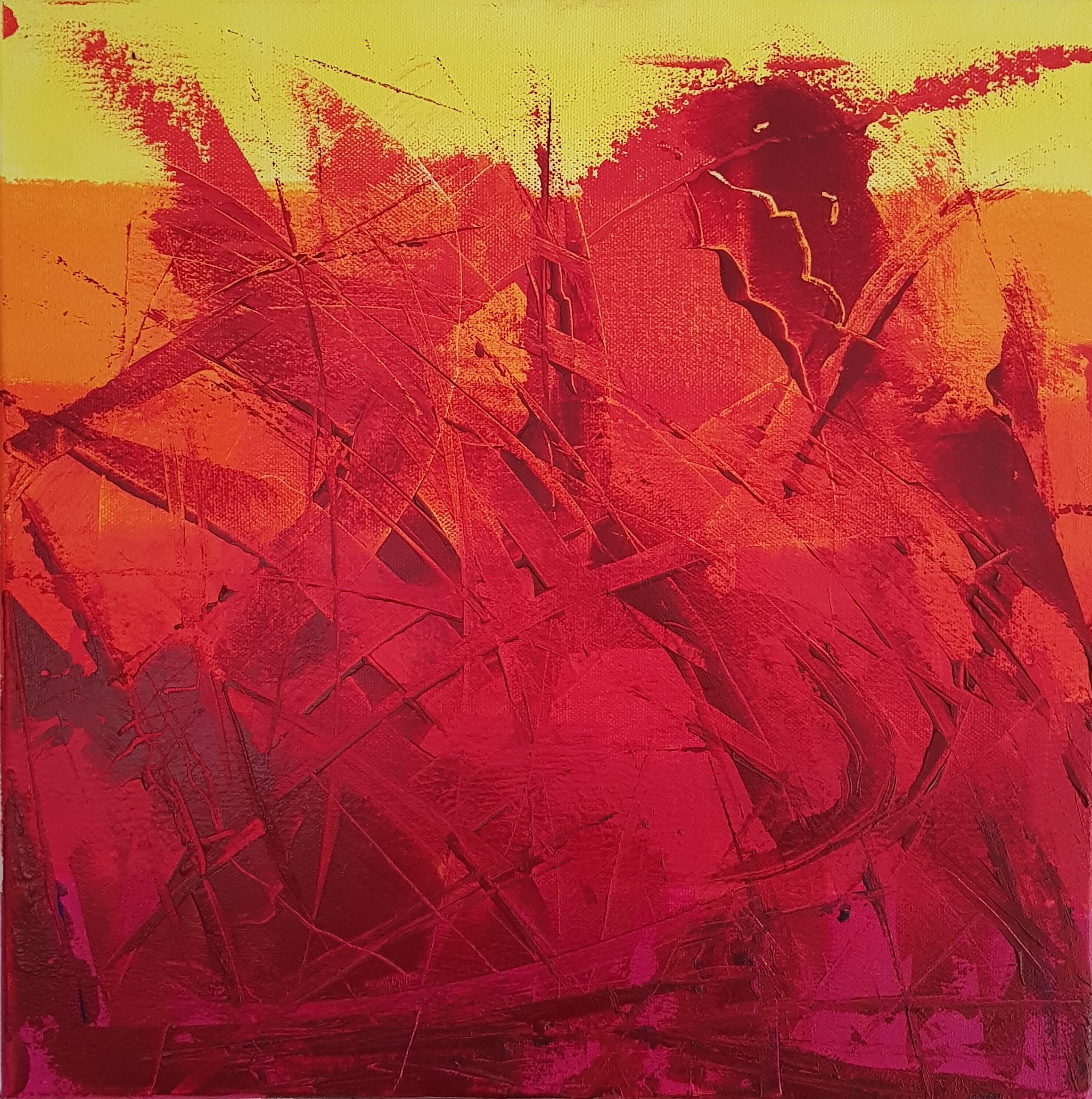 Tachistische Arbeit in Mischtechnik auf Keilrahmen 40x40x1,6cm