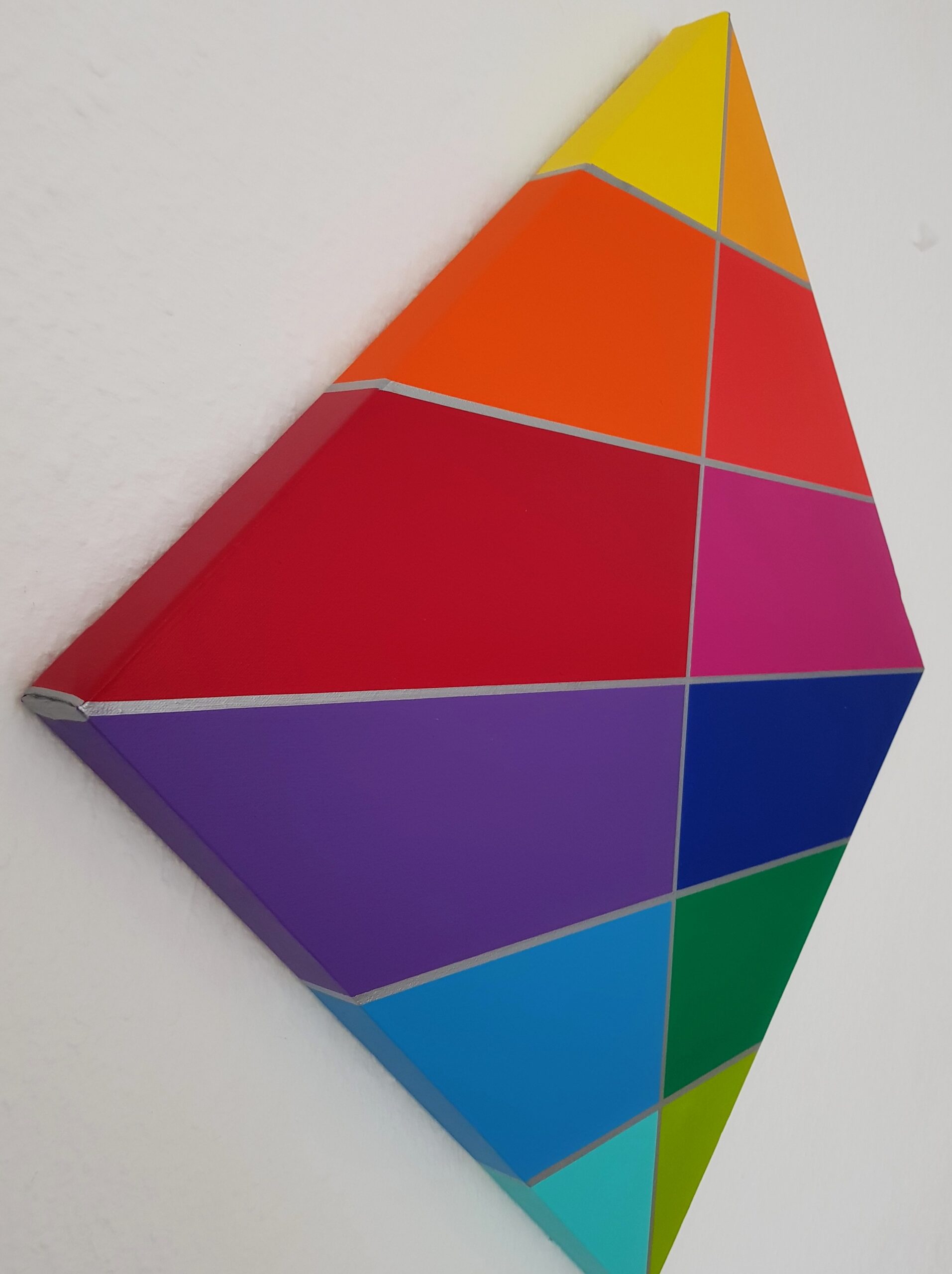 Acrylmalerei auf Leinwand, das die reinen 12 Tertiärfarben analog dem Itten – Farbkreis verwendet.
