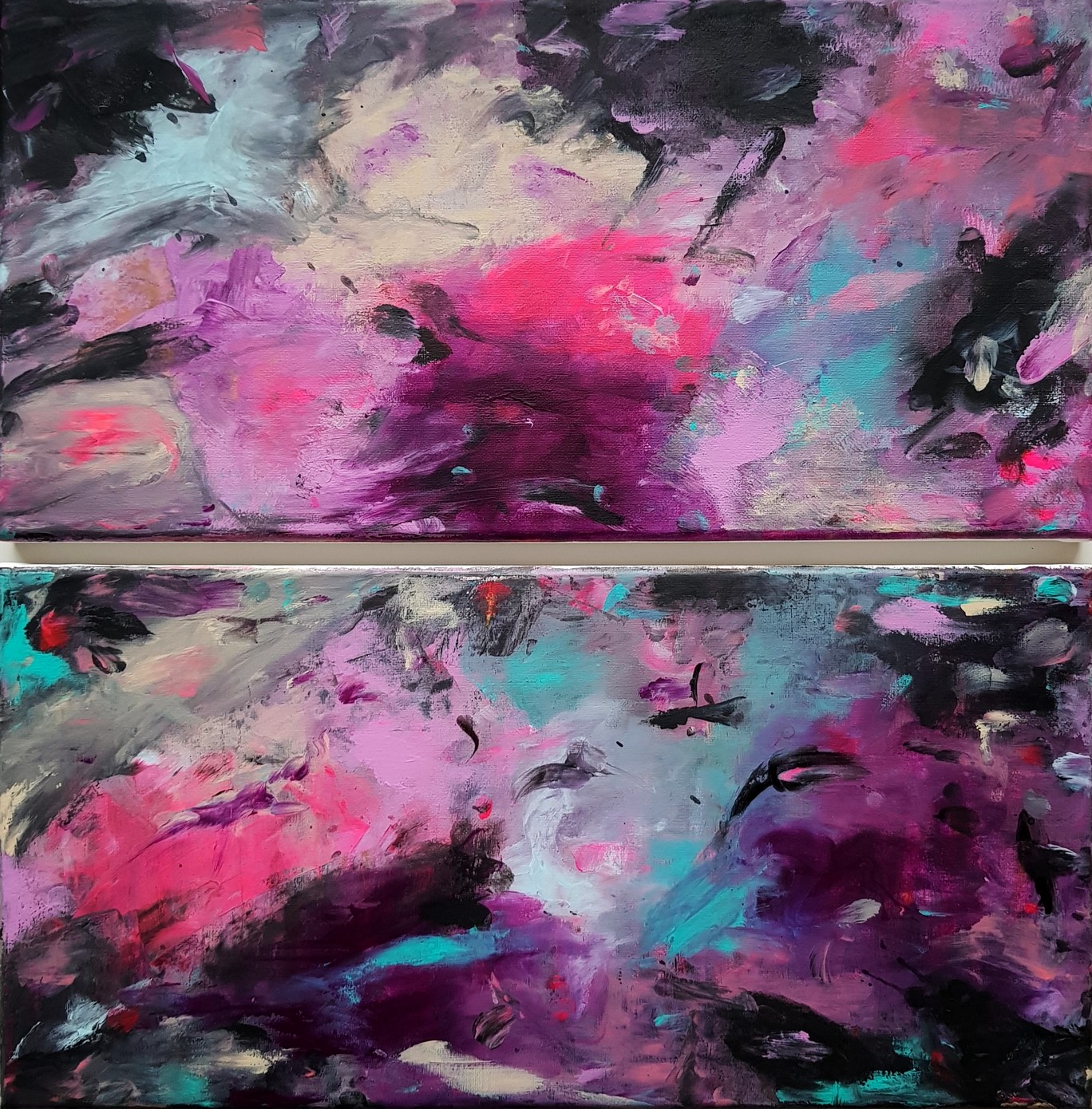 Diptychon – aus zwei farbstarken Kompositionen in Wisch-Misch-Technik