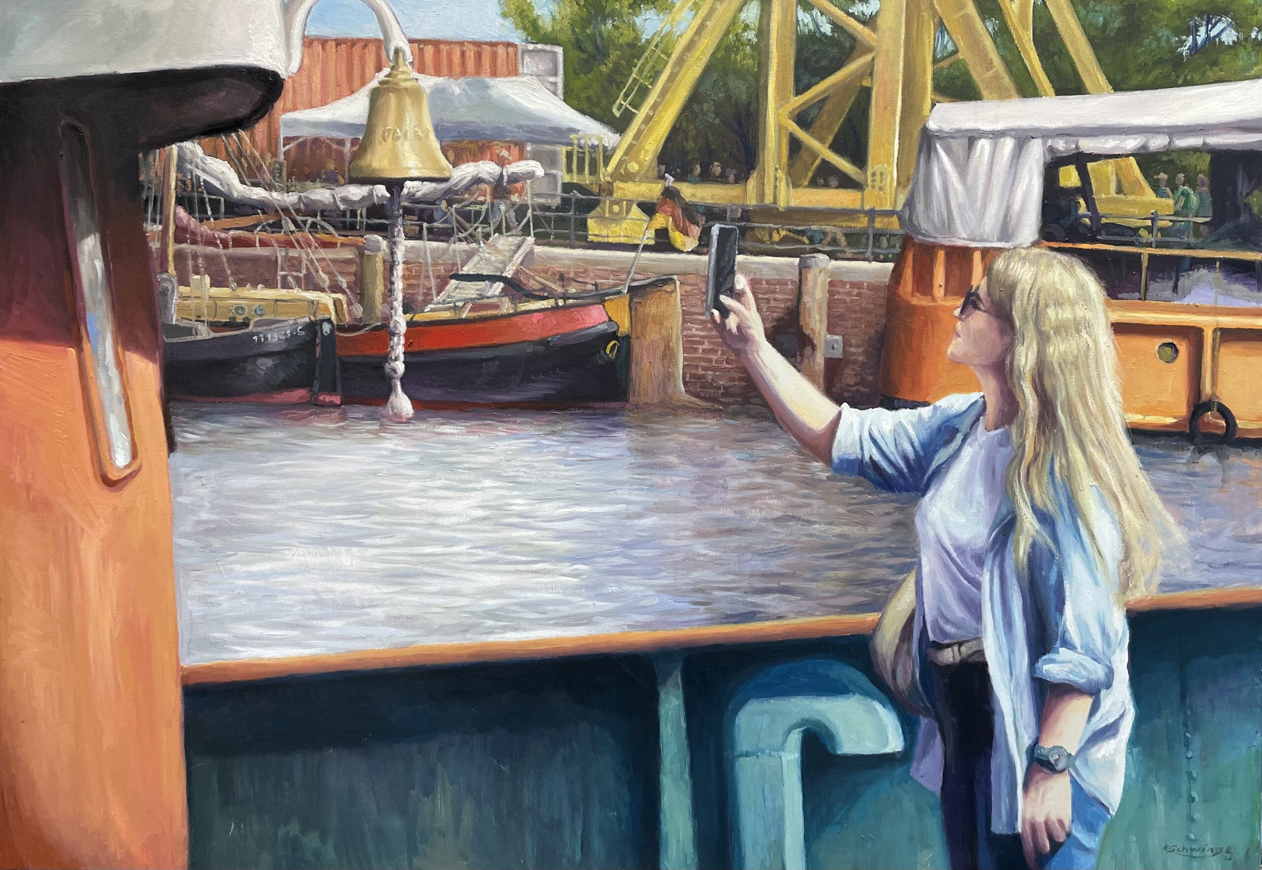 Verkauft wird hier das Werk „Die Schiffsflocke“. Es zeigt eine Szene im Harburger Hafen, am Hafenfest 2024.