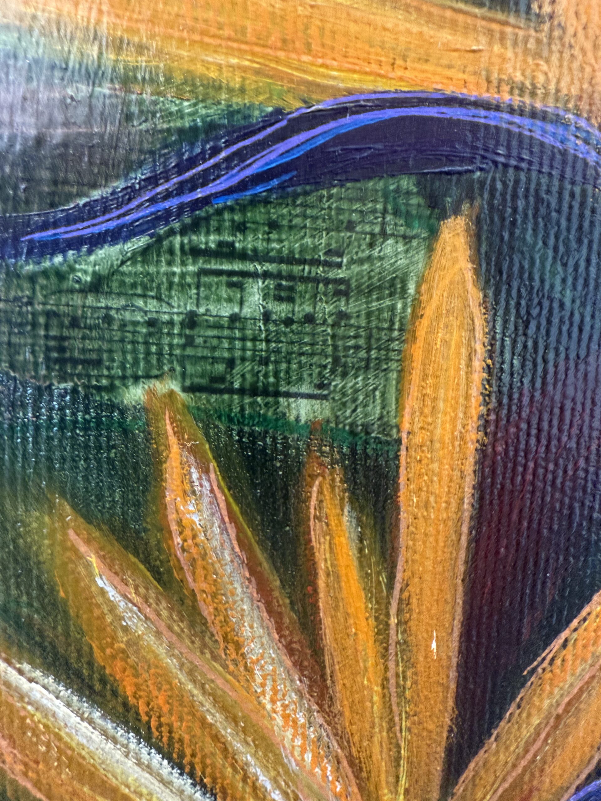 Eyes of the Jungle ist ein kraftvolles Bild über die stille Autorität der Natur und den menschlichen Blick darauf. Der Panther, fast eins mit dem tiefgrünen Hintergrund, tritt hervor, als würde er den Betrachter direkt prüfen. Umrahmt von abstrahierten Pflanzenformen wirkt er zugleich schützend und fordernd. Dieses Werk macht sichtbar: Was lebendig ist, braucht keinen Schutz durch Angst, sondern durch Einsicht. Denn Zerstörung lässt sich nicht rückgängig machen – nur vermeiden.