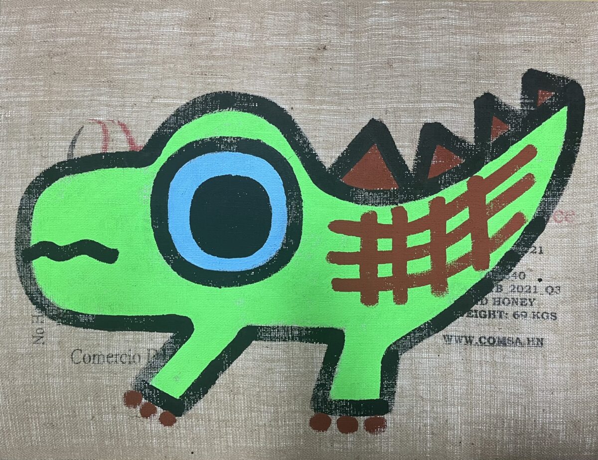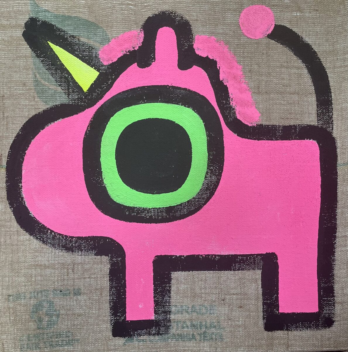 80 × 80 × 1.8 cm (B×H×T), Acryl auf Jutesack