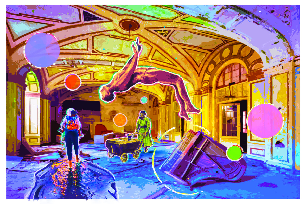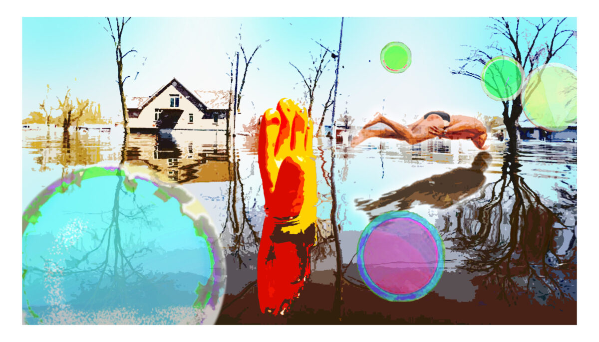 300 × 200 × 2 cm (B×H×T), Öl z.T. fluoreszierend auf 500g/qm PVC-Plane