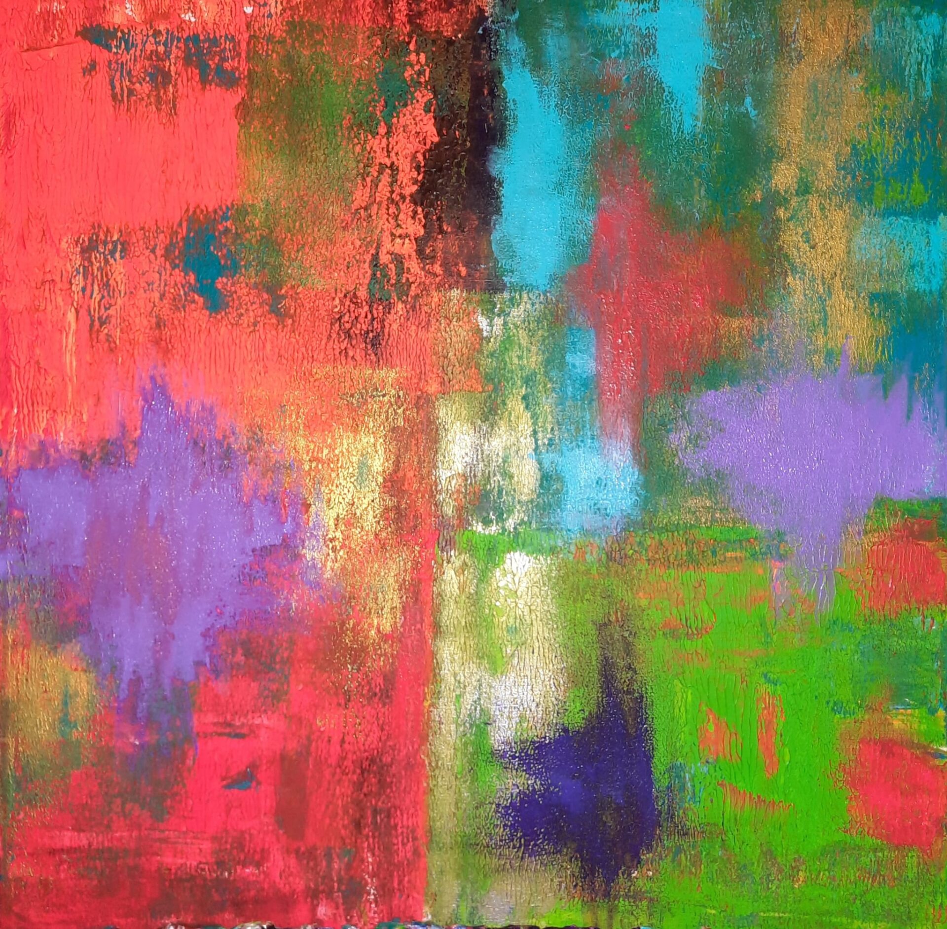 Acryl-Mischtechnik mit buntschimmerndem Art Metall veredelt