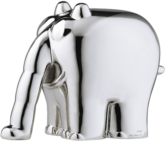 Skulptur des berühmten Ottifanten aus Kunstguss in hochglanzlackierter Metallic-Optik. Limitierte Auflage 499 Exemplare, nummeriert, signiert und mit dem ars mundi-Stempel punziert. Mit nummeriertem Authentizitäts- und Limitierungszertifikat. Format 21 x 14 x 29 cm (H/B/T). Gewicht ca. 6,4 kg. Version in Silber.
